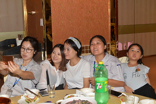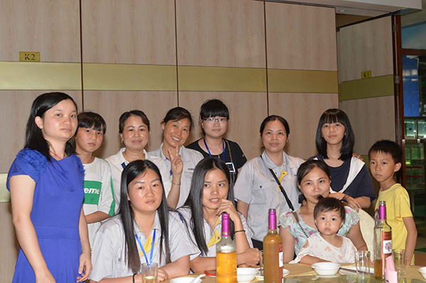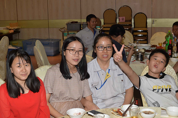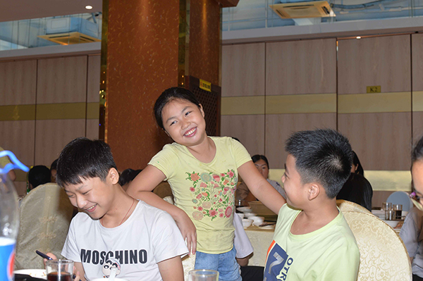 放暑假了。小朋友和大朋友一起吃飯……